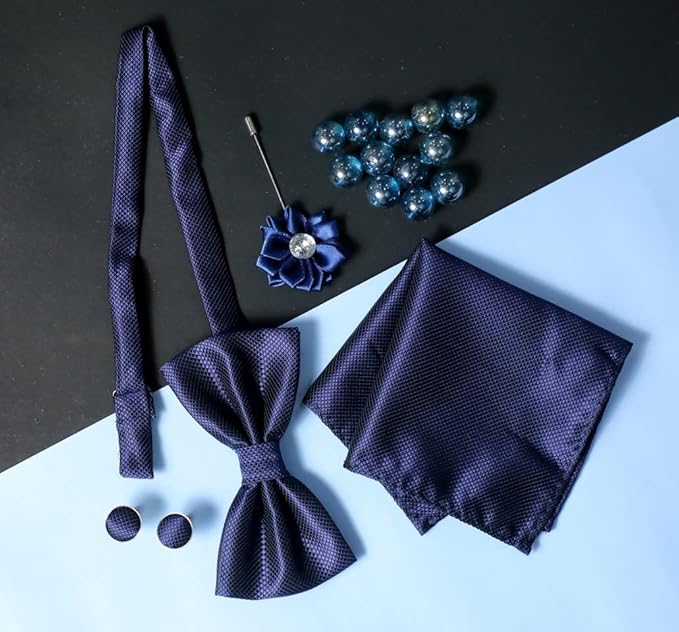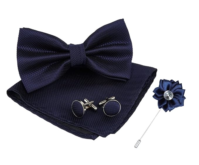 This listing includes bow tie, pocket square, cufflinks, and flower pin only