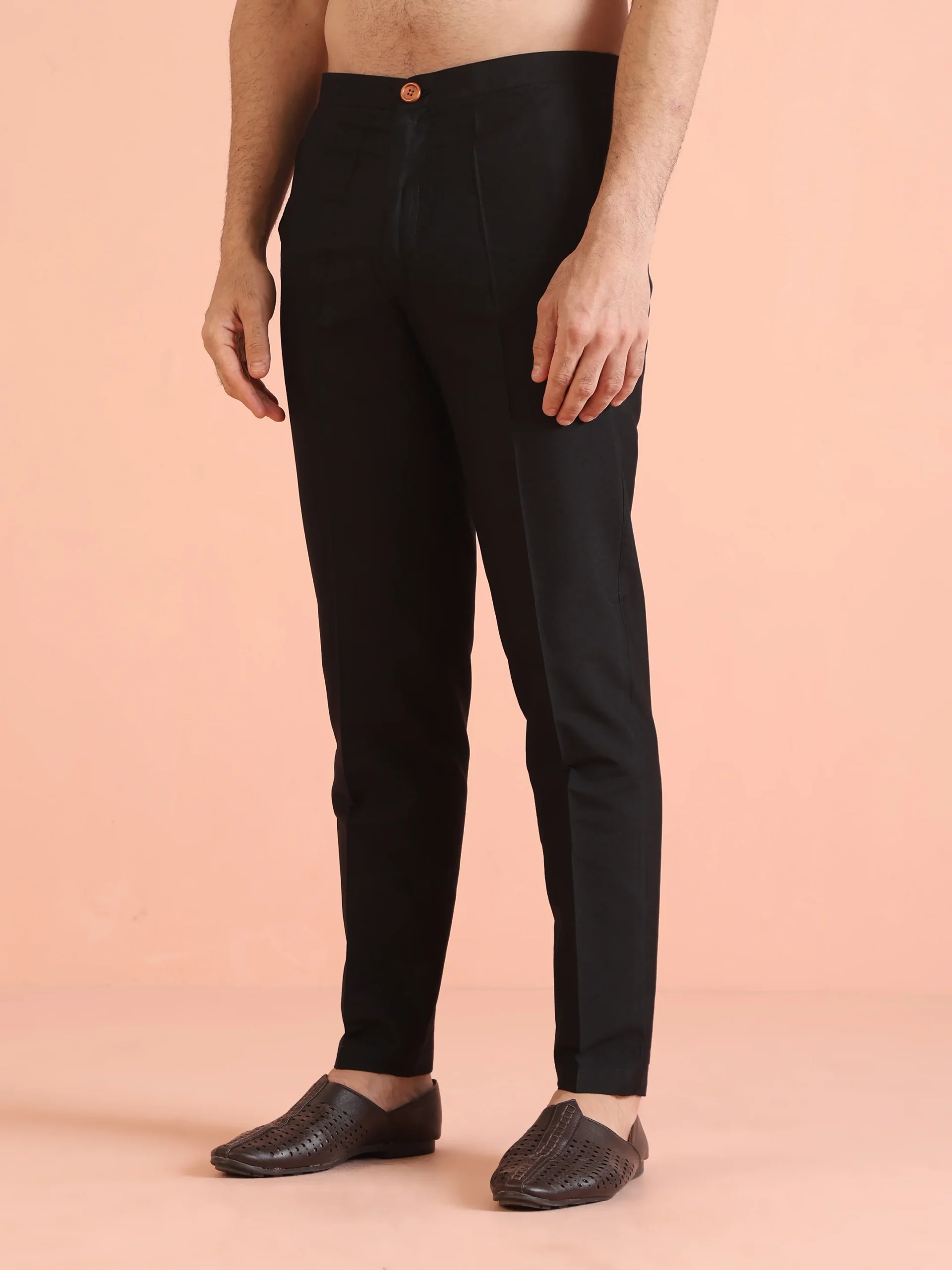 Pairs well with traditional footwear such as mojaris or sandals, or modern footwear like loafers for a semi-formal look.